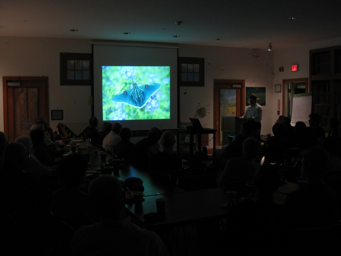 Over 60 members and friends of the club attended the potluck dinner and meeting. Long time member Tom Murray presented a brief tour of his new book “Insects of New England and New York”. Jeff Glassberg, President of the North American Butterfly Association, introduced his new book “A Swift Guide to Butterflies of North America” and presented a slide show "See the USA, the butterfly way!" featuring some of his favorite places to look for butterflies in the USA. With two new books, club tee-shirts, and new club baseball caps all much in evidence it was a very festive evening!